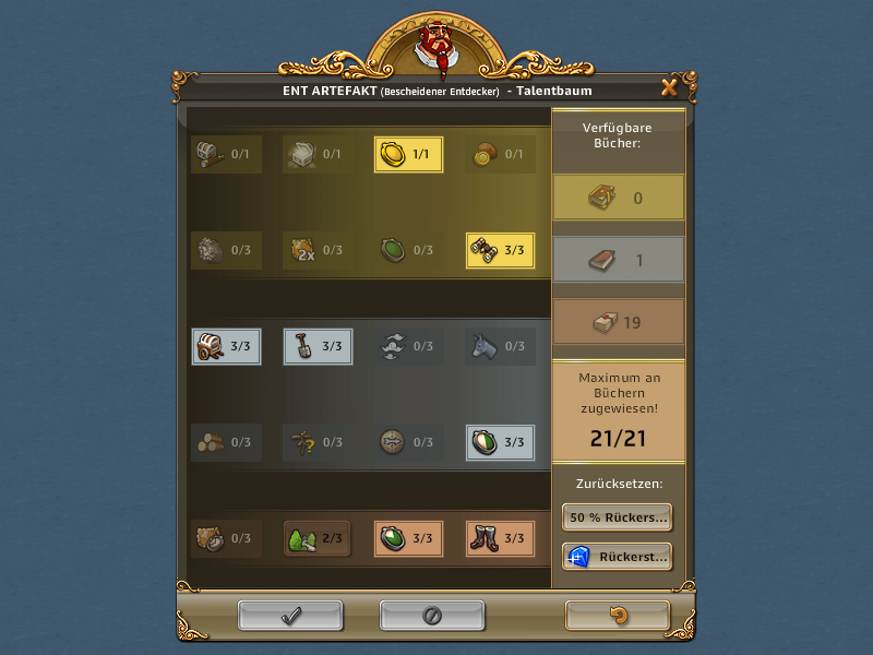 ★ Schreckhafter Entdecker für Schatzsuchen Der Schreckhafte benötigt für alle Suchen 4x so lange, bringt dann aber auch 4x so viel mit. Seine besondere Fähigkeit ist aber eine kleine Chance auf besondere Schätze wie: PFF, Premiumtage oder Bücher. Je länger die Schatzsuche, desto höher die Chance. Durch diese besondere Fähigkeit bekommt er KEINE Artefaktsuche oder ähnliches, sondern skillen ALLES was irgendwie Reisezeiten reduziert. Habe es im Screenshot auch extra ROT markiert. Statt 3x Abseitige Pfade kann man natürlich auch 3x Abkürzung in der 1. Reihe skillen was billiger ist.